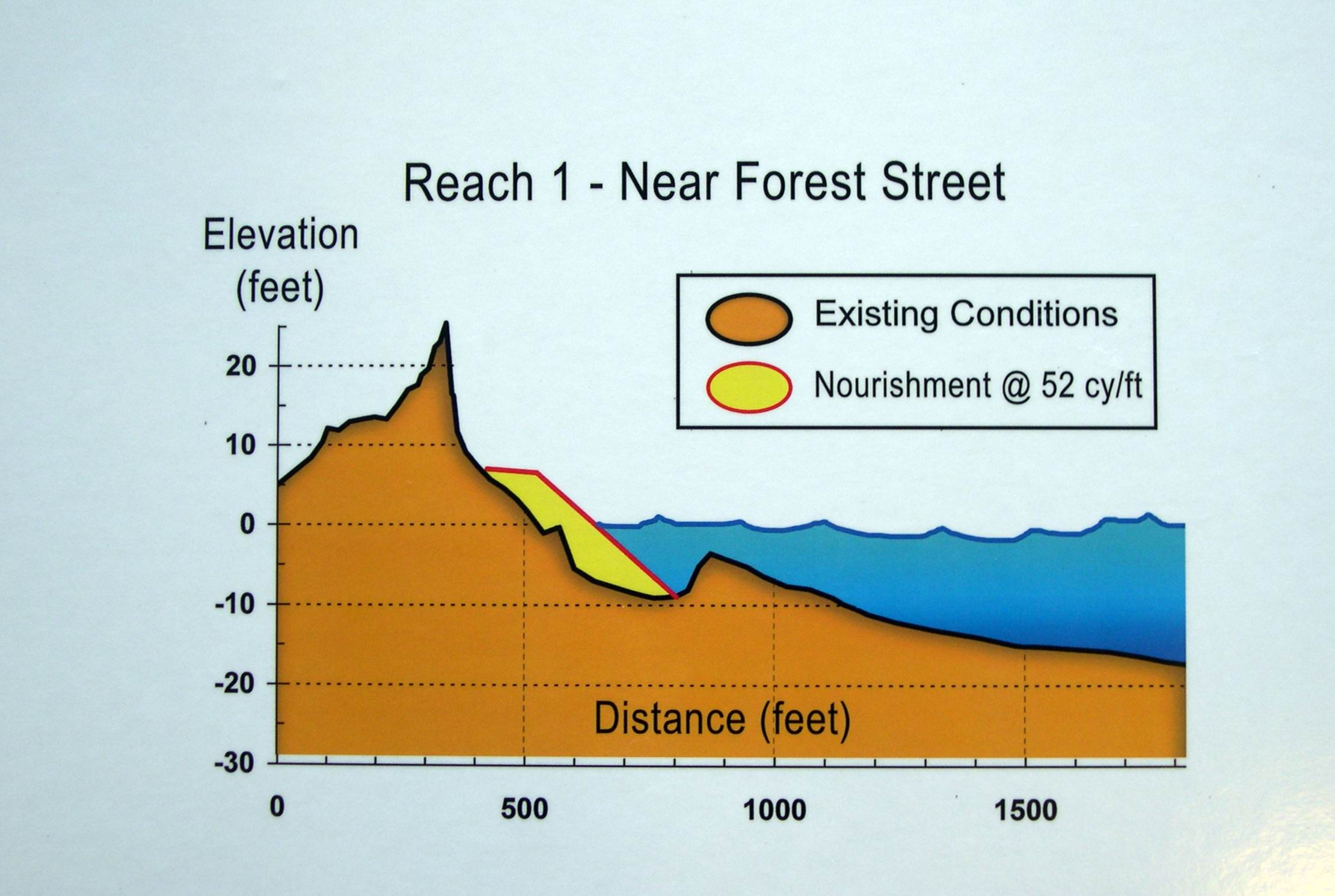 View the graphics and statistics on this page to learn more about beach elevations pre and post beach nourishment. Actual quantity will vary plus or minus 10% depending on project bids and final budget.