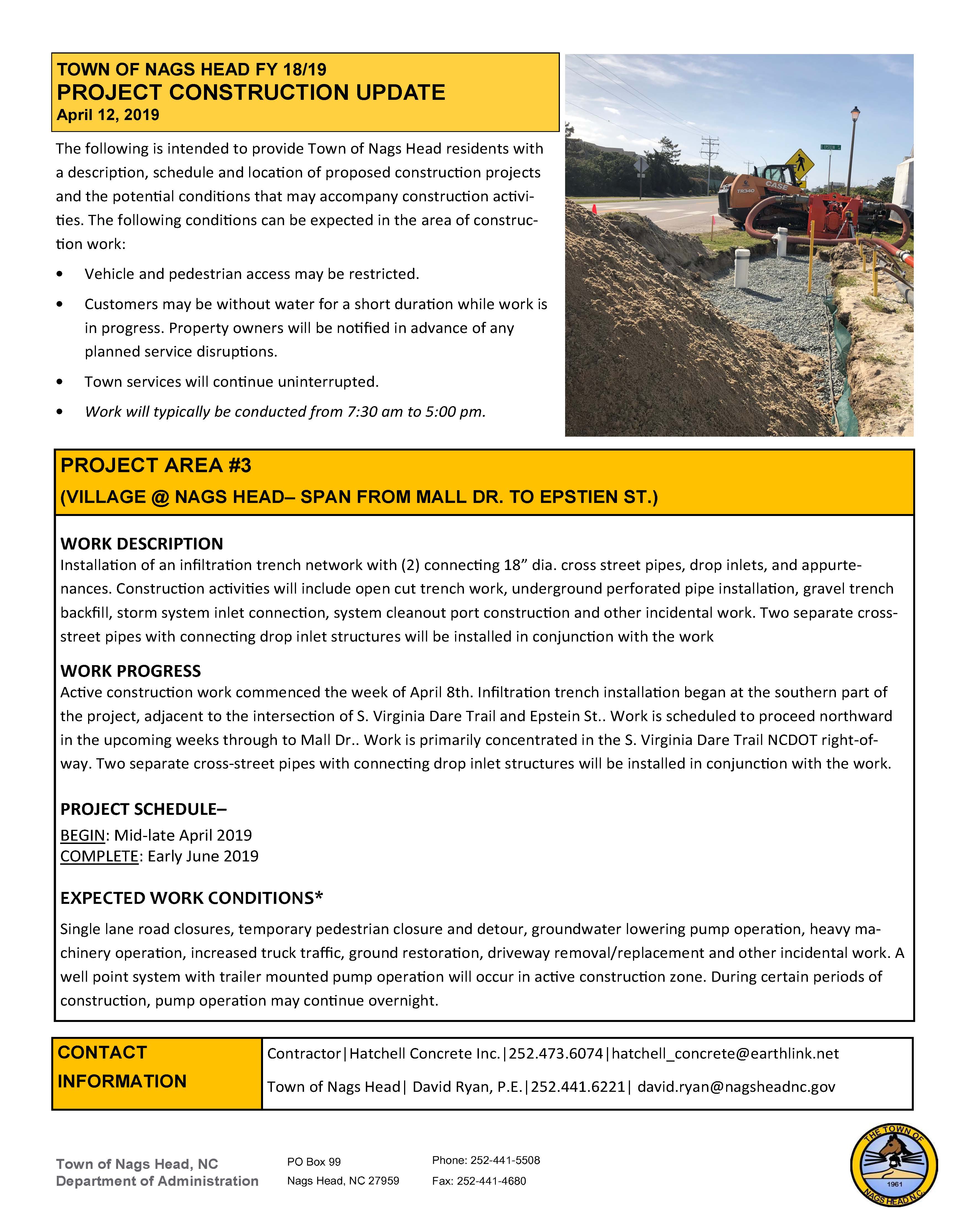 The Town of Nags Head is currently working on three major draining improvement projects. For updates, click on a link below.